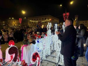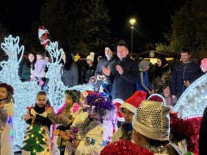„Поштовани родитељи, драги васпитачи и наставници, драга децо, желим вам све најлепше у 2026. години. Поред традиционалних пакетића које вечерас делимо, припремили смо и посебно изненађење. Позивам сву децу, маме, тате, али и баке и деке, да се ове зиме опробају у клизању на леду. Срећни вам празници, срећна Нова година и Божић“, поручио је Ковачевић.
