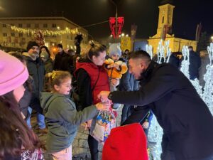 У програму који је синоћ изведен учествовала су деца из ПУ „Сунце“, уз неизоставно присуство Деда Мраза.